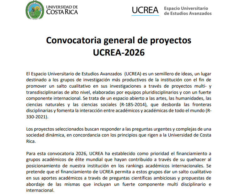 Convocatoria general de proyectos UCREA-2026 Para obtener más información, descargar el siguiente...