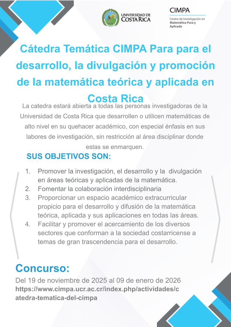 El Centro de Investigación en Matemática Pura y Aplicada (CIMPA) es una unidad especializada en la investigación avanzada en matemáticas, tanto en las ramas teóricas como en las aplicaciones. El Centro ha tenido un rol fundamental en el desarrollo de la investigación matemática a nivel nacional y regional. Se encuentra adscrito a la Vicerrectoría de Investigación de la Universidad de Costa Rica.