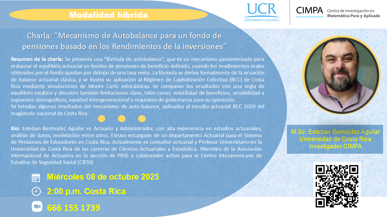 Se presenta una “fórmula de autobalance”, que es un mecanismo parametrizado para restaurar el equilibrio actuarial en fondos de pensiones de beneficio definido, cuando los rendimientos reales obtenidos por el fondo quedan por debajo de una tasa meta. La fórmula se deriva formalmente de la ecuación de balance actuarial clásica, y se ilustra su aplicación al Régimen de Capitalización Colectiva (RCC) de Costa Rica mediante simulaciones de Monte Carlo estocásticas. Se comparan los resultados con una regla de equilibrio estático y discuten también limitaciones clave, tales como: volatilidad de beneficios, sensibilidad a supuestos demográficos, equidad intergeneracional y requisitos de gobernanza para su operación.